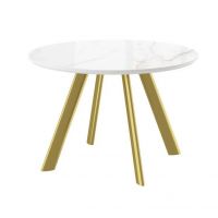 Стол RONDY-116, круглый нераздвижной 116, Beldia Bianco Gloss Premium Cer/Золото