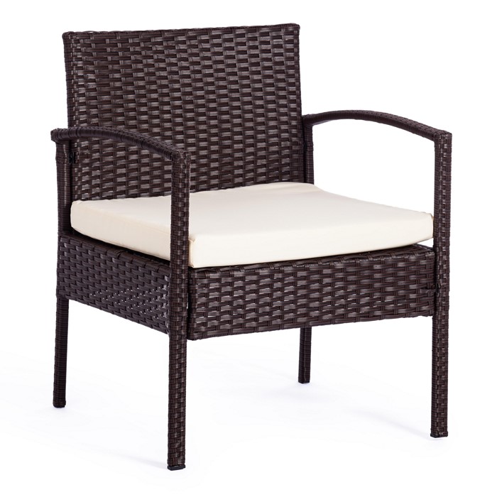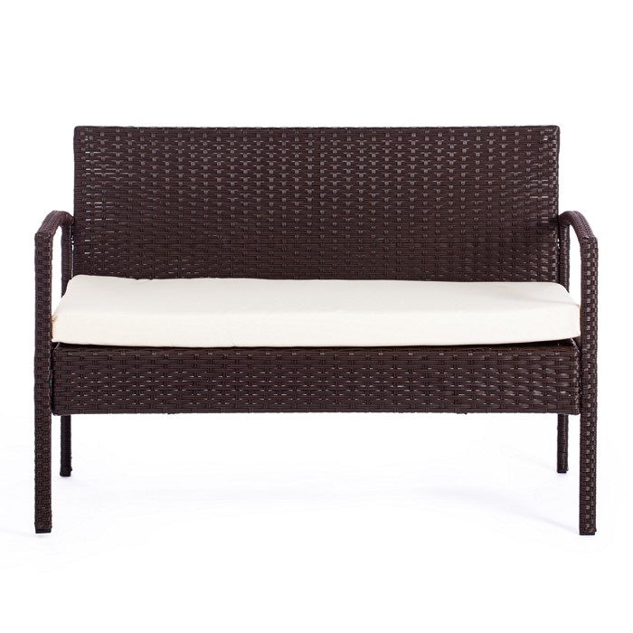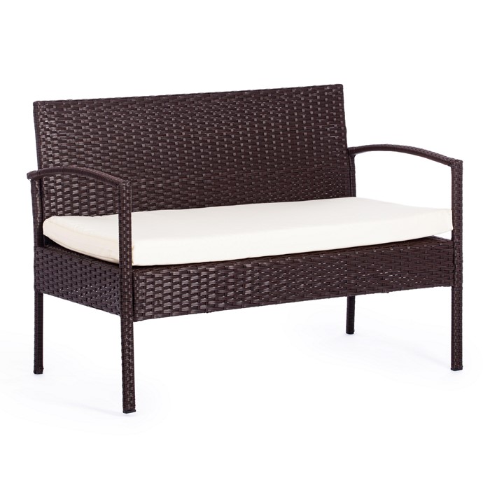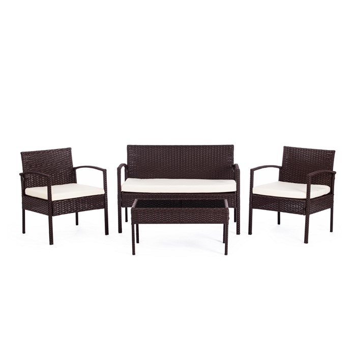 Лаундж сет [диван+2кресла+столик+подушки] (мод.210000) пластиковый ротанг, коричневый, ткань DB-02 бежевый