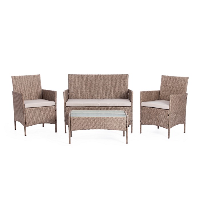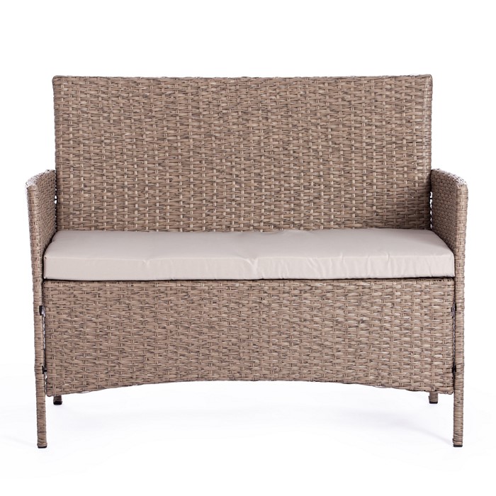 Лаундж сет [диван+2кресла+столик+подушки] (мод.210013 А) пластиковый ротанг, серый, ткань DB-11 светло-серый