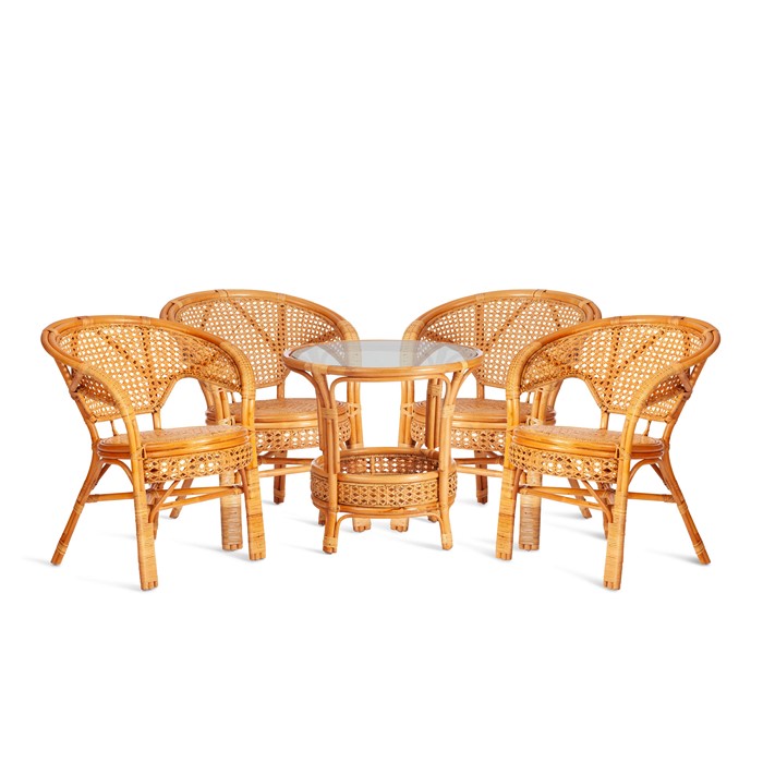 Комплект "Pelangi/Пеланги" 02/15 (стол со стеклом + 4 кресла) [без подушек] ротанг, медовый
