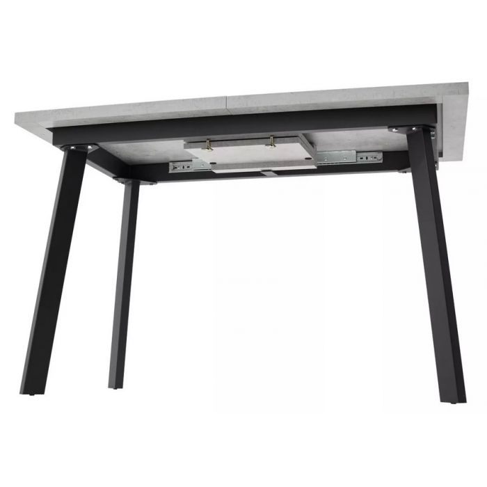 Раздвижной, легко раскладывается - вставка бабочка; столешница - ЛДСП EGGER толщиной 32 мм; основание стола - металл, профиль 50х25 мм, цвет - черный; Упакован в 1 коробку.