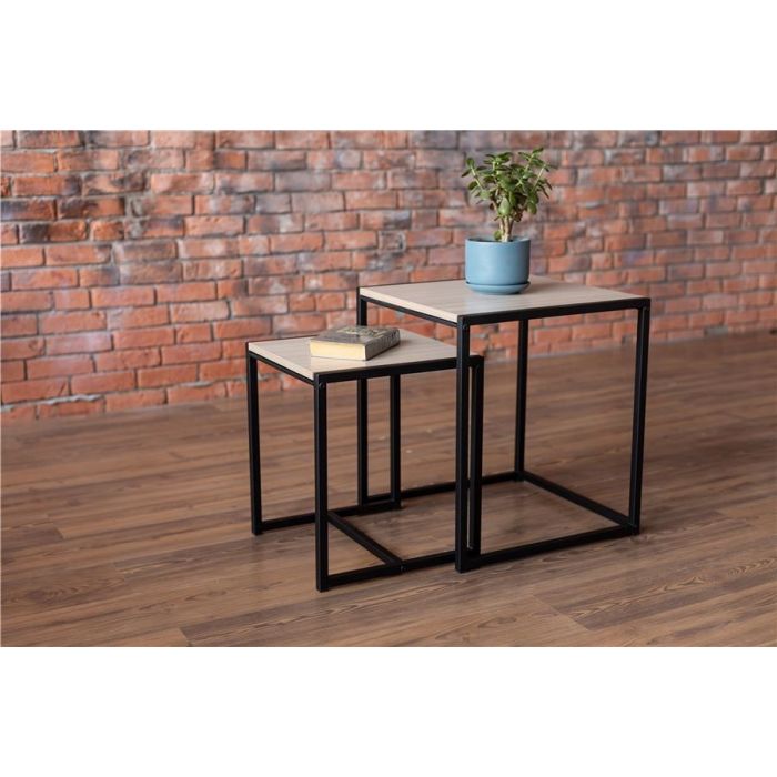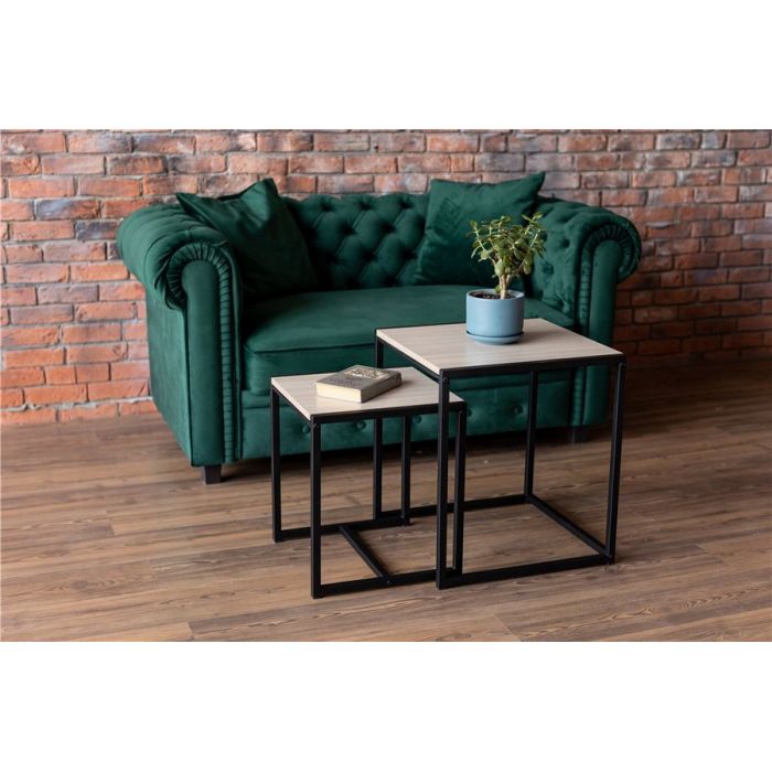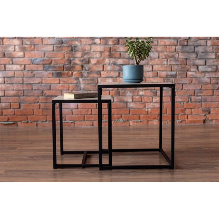 В комплект входит 2 стола в стиле Лофт. Терса - большой: 490х490х560мм, столешница: 450х490 мм. Терса - малый: 390х390х460мм., столешница: 350х390 мм. Каркасы столов выполнены из профильной трубы 20х20мм, толщина трубы 1,2мм. Окрашены полимерной краской. Столешницы ЛДСП 16мм.