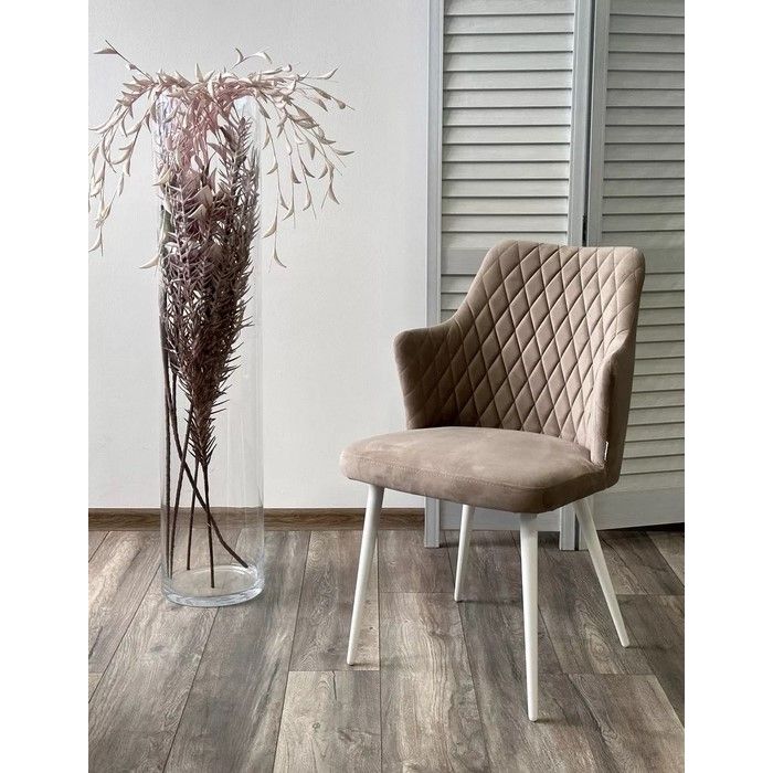 Стул HERMAN поворотный на 360 град. латте белый каркас. Сиденье обито велюром серии BARKHAT-M. Ножки стула - металл белого цвета. Упакован - 4 шт. в 2 кор.