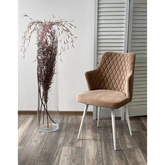Стул HERMAN БЕЖЕВЫЙ 5, велюр / белый каркас