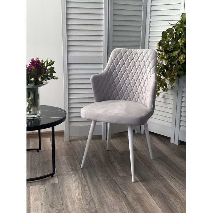Стул HERMAN светло-серый белый каркас. Сиденье обито велюром серии BARKHAT-MATTE с антипальчиковым эффектом. Ножки стула - металл белого цвета. Упакован - 4 шт./2 кор.