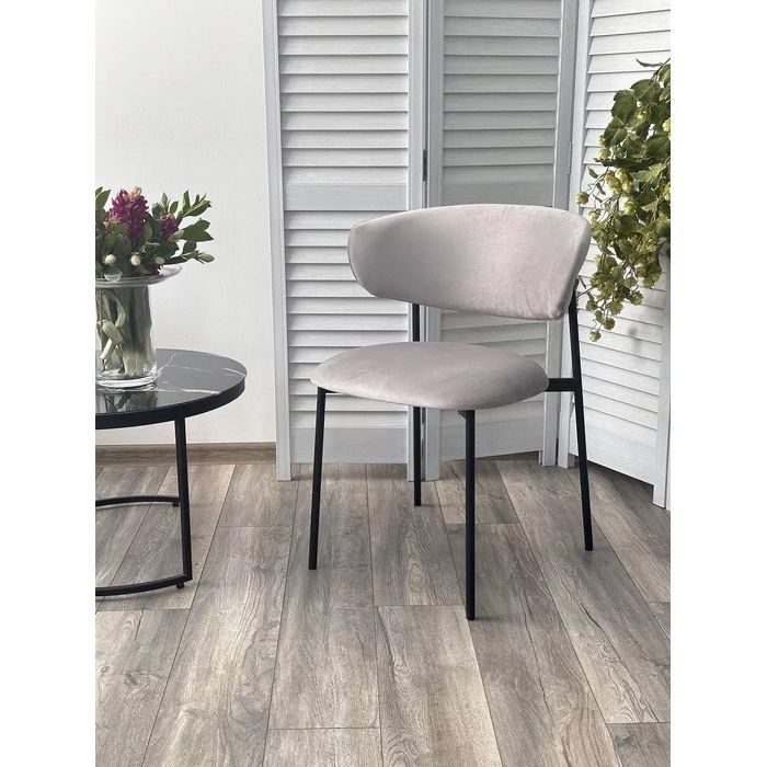 Стул ЛЕОНАРДО H-09 Светло-серый, велюр / черный каркас