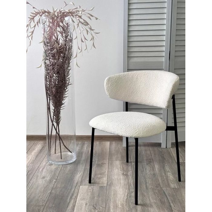 Стул ЛЕОНАРДО белый. Сиденье обито букле Soul, 53 000 циклов по Мартиндейлу. Ножки стула - металл черного цвета. Номинальная нагрузка на стул 120 кг. Упакован - 2 шт./1 кор.